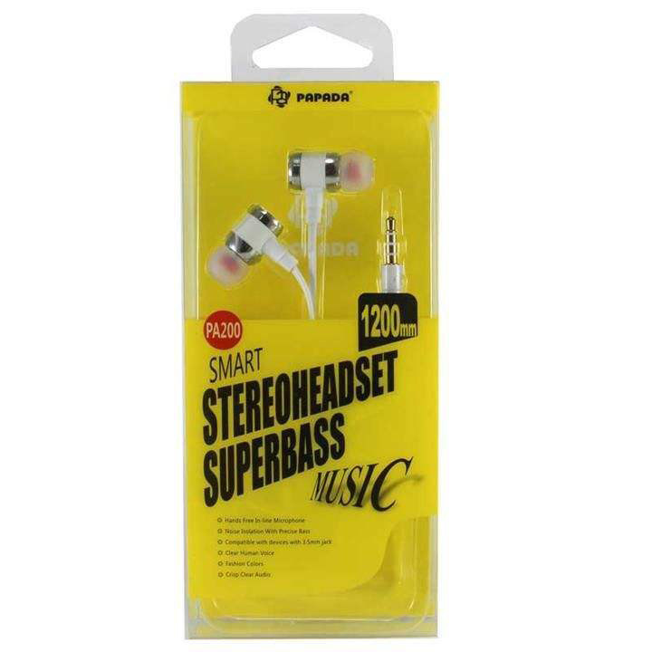 هندزفری PAPADA مدل PA200 از جمله هندزفری های هوشمند (Smart Stereo Headset Super Bass Headphones) این کمپانی محسوب میشود که صدای بیس فوق العاده آن باوجود کیفیت صدای عالی Stereo ، شفافیت و وضوح مطلوبی را به کاربران این محصول ارئه میدهد. شما میتوانید با این هندزفری تماس برقرار کنید و یا به موسیقی های خود با بهترین کیفیت گوش فرا دهید. همچنین PA200 در میکروفون خود دارای قابلیت حذف نویز و صداهای اضافه (Noise Isolation With Precise Bass) است و توانایی تفکیک صدای انسان (Clear Human Voice) را نیز دارا میباشد. یعنی صدای شما با کوچکترین جزئیات و کیفیت برای شنونده آن سوی تماس پخش میشود، بدون اینکه وی متوجه صداهای اضافی محیط اطراف شما شود. سیم این هندزفری بصورت پهن طراحی شده و از هم تابیدگی و گره خوردن جلوگیری میکند. طول این سیم 1.2 متر و سری AUX آن از نوع جک 3.5 میلیمتری میباشد.